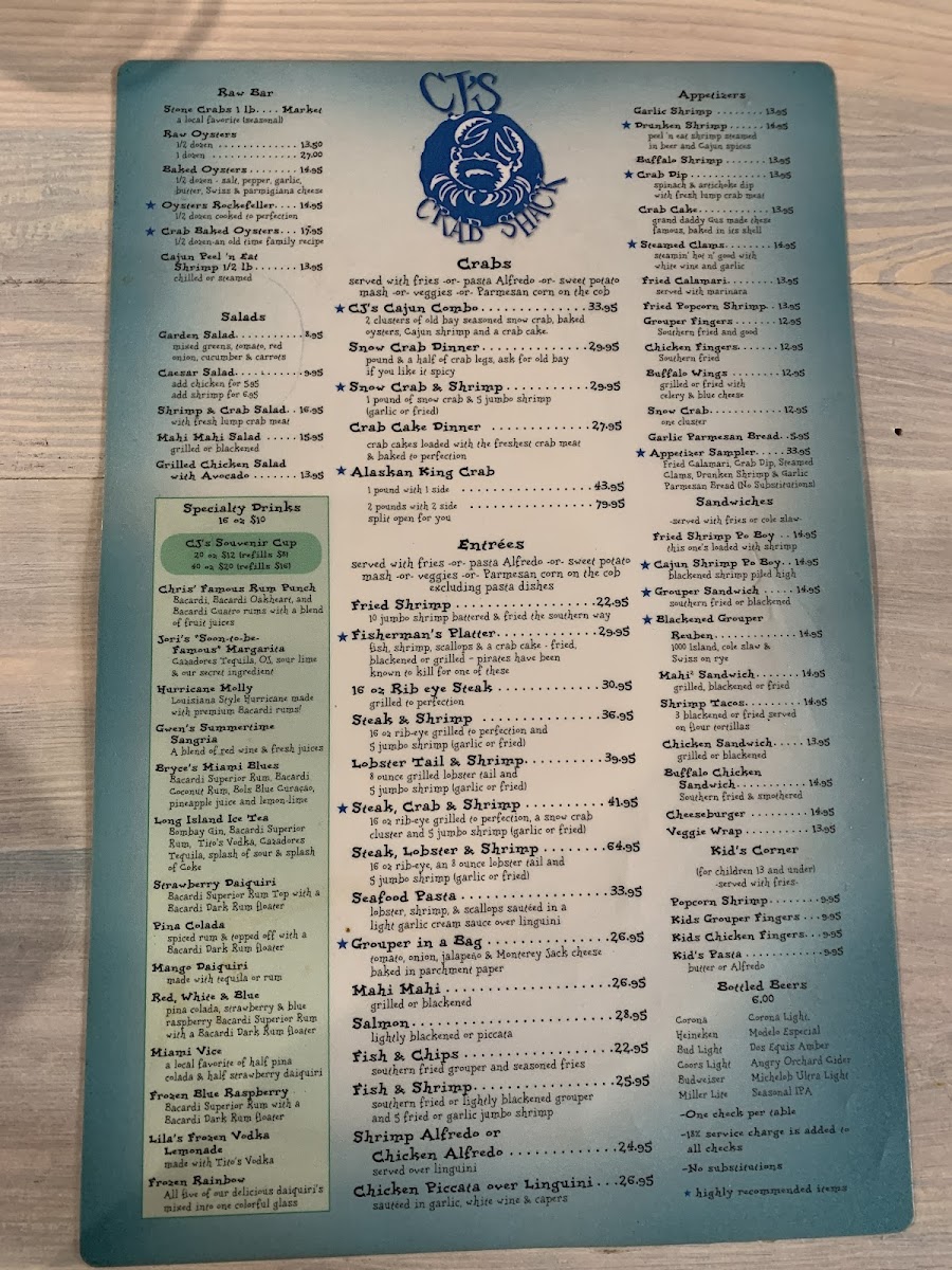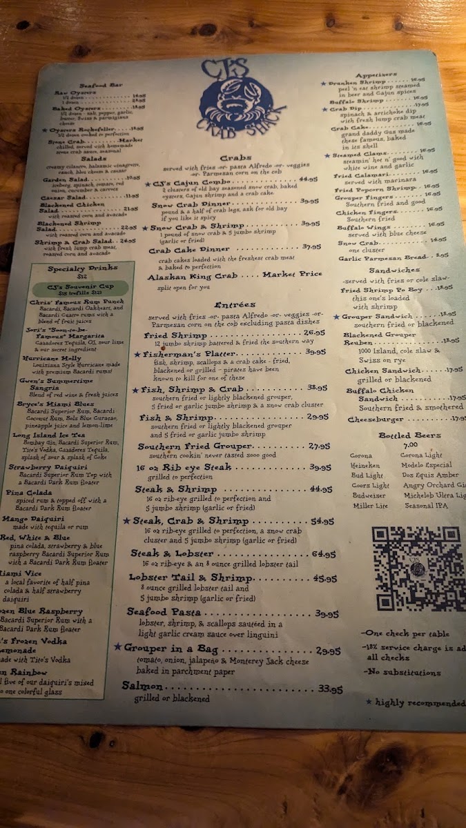 Pound & a half of crab legs, ask for old bay if you like it spicy.